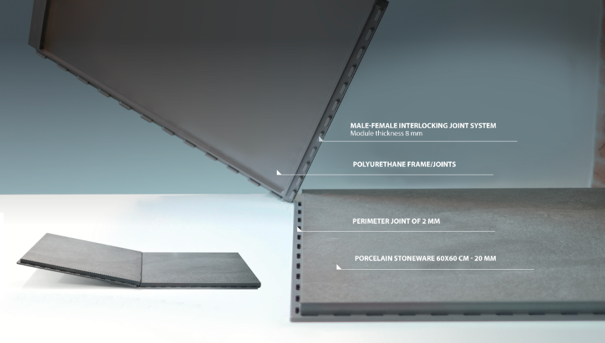 Click and Go combines the benefits of ceramic’s top-level technical performances with an exclusive, innovative interlocking joint system for extremely easy, quick, versatileinstallation of indoor and outdoor pavings.